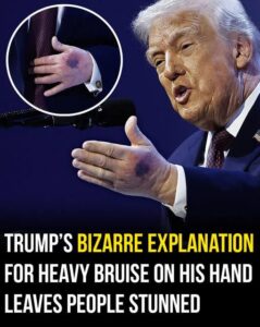 In the high-stakes theater of American politics, even the smallest physical imperfection can launch a thousand conspiracy theories. Recently, a dark, heavy bruise on the back of Donald Trump’s left hand became the most scrutinized patch of skin in the world. What the White House dismissed as a mundane domestic accident quickly transformed into a political Rorschach test, revealing a nation deeply divided not just by ideology, but by its fundamental perception of reality. To some, the mark was a “smoking gun” of a concealed health crisis; to others, it was the ultimate example of a predatory media cycle desperate to turn a bump into a breakdown.