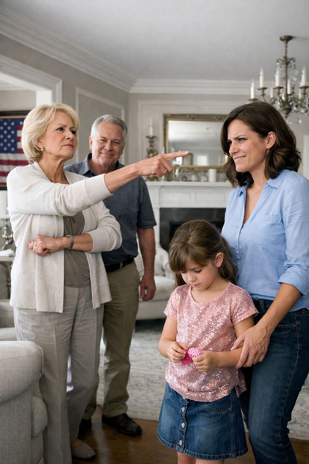 Mom came out of the kitchen wearing an apron, flour smudged in her hair like she’d tried harder than she wanted anyone to notice.